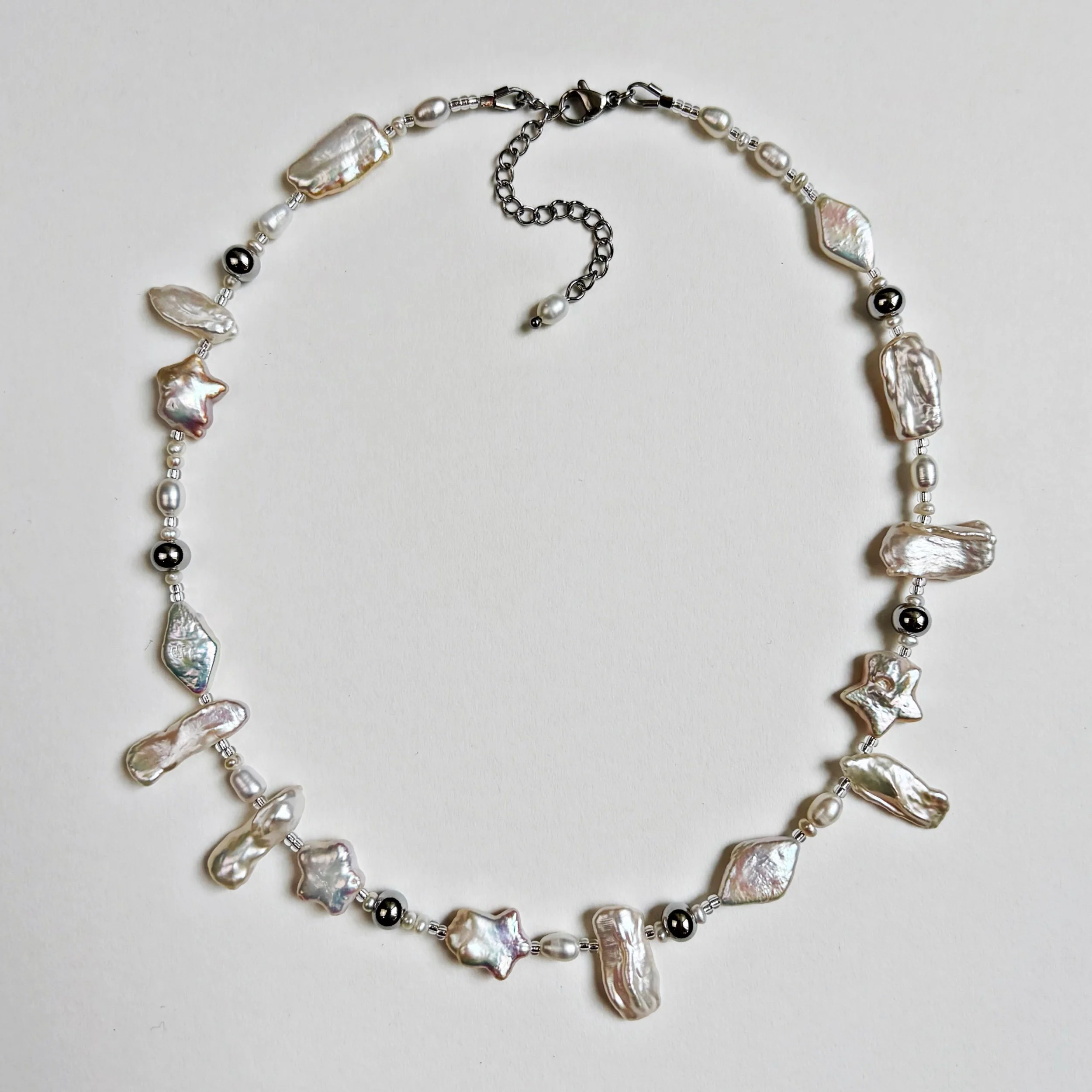 freshwater and keshi pearls, stainless steel beads, glass beads and stainless steel findings