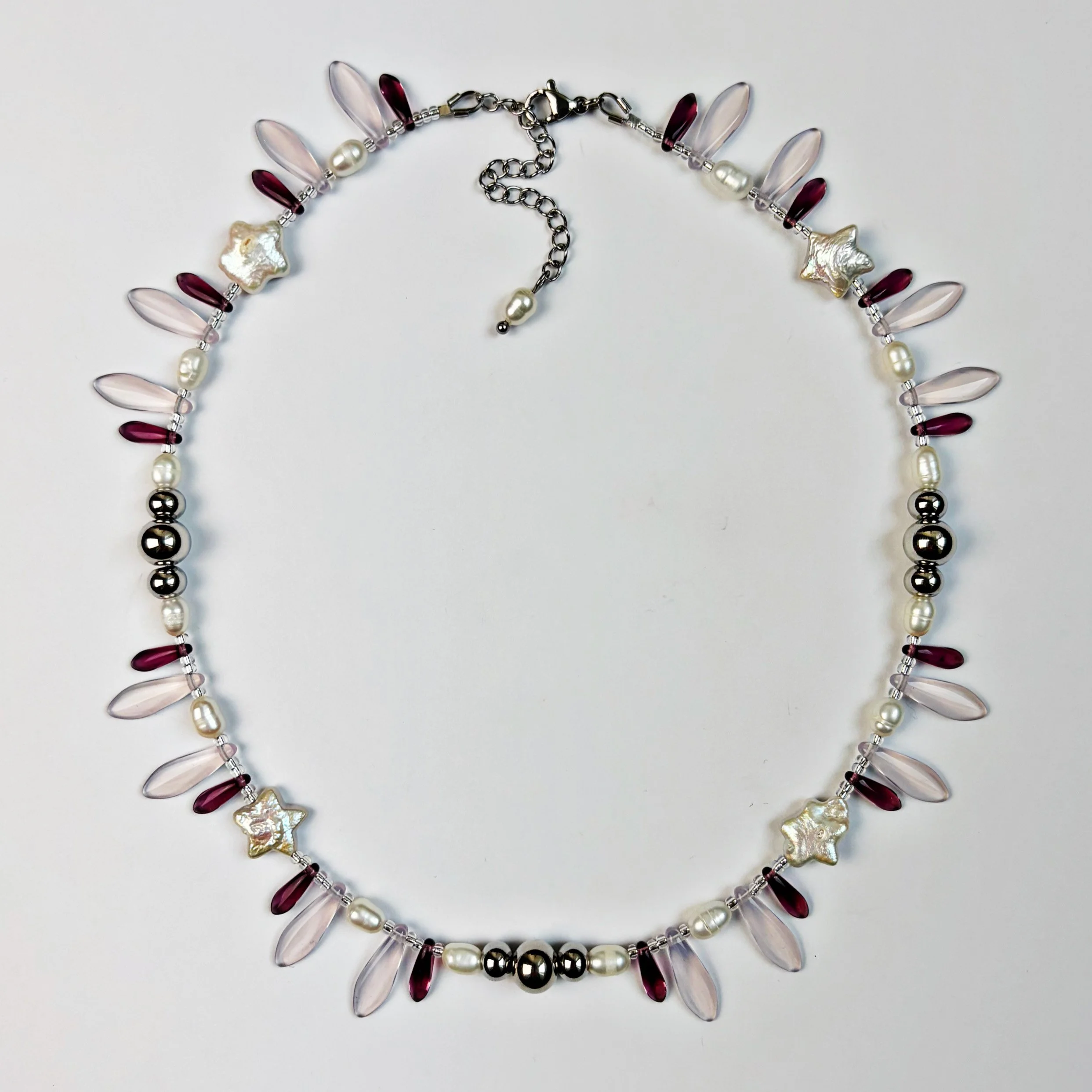 freshwater pearls, stainless steel chainmaille, glass beads and stainless steel findings