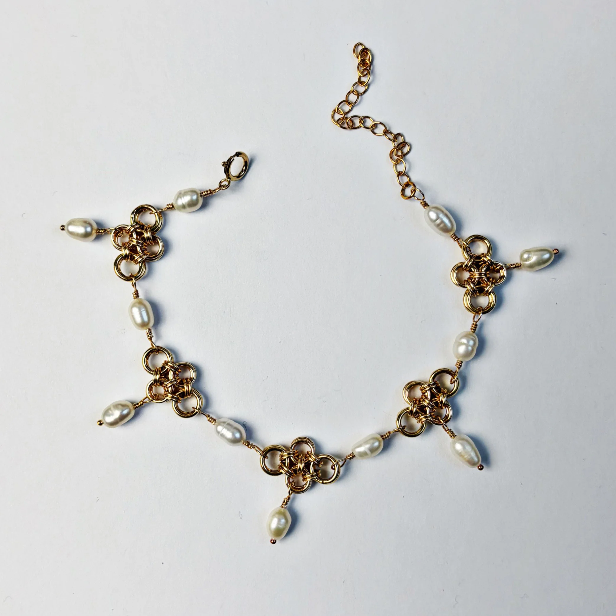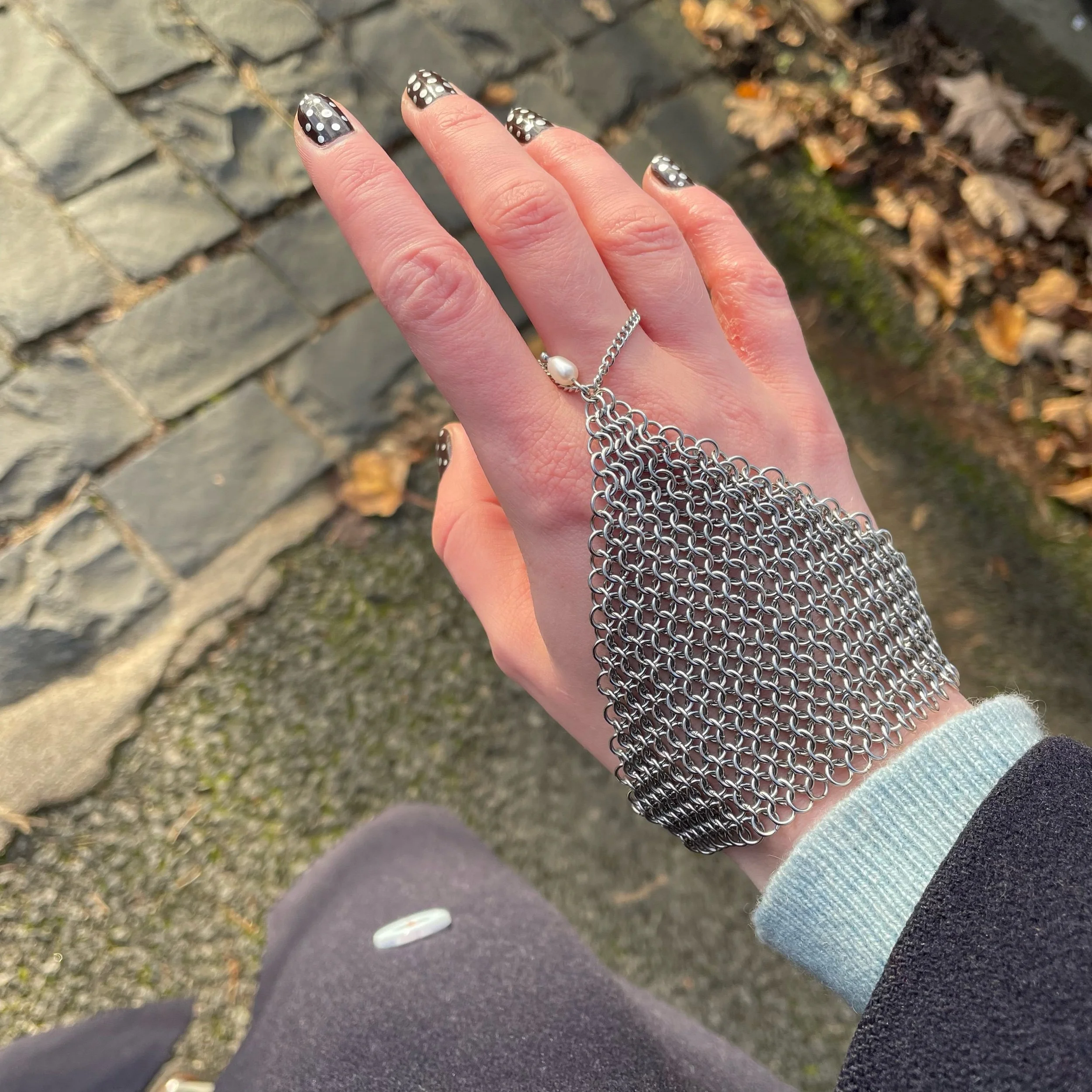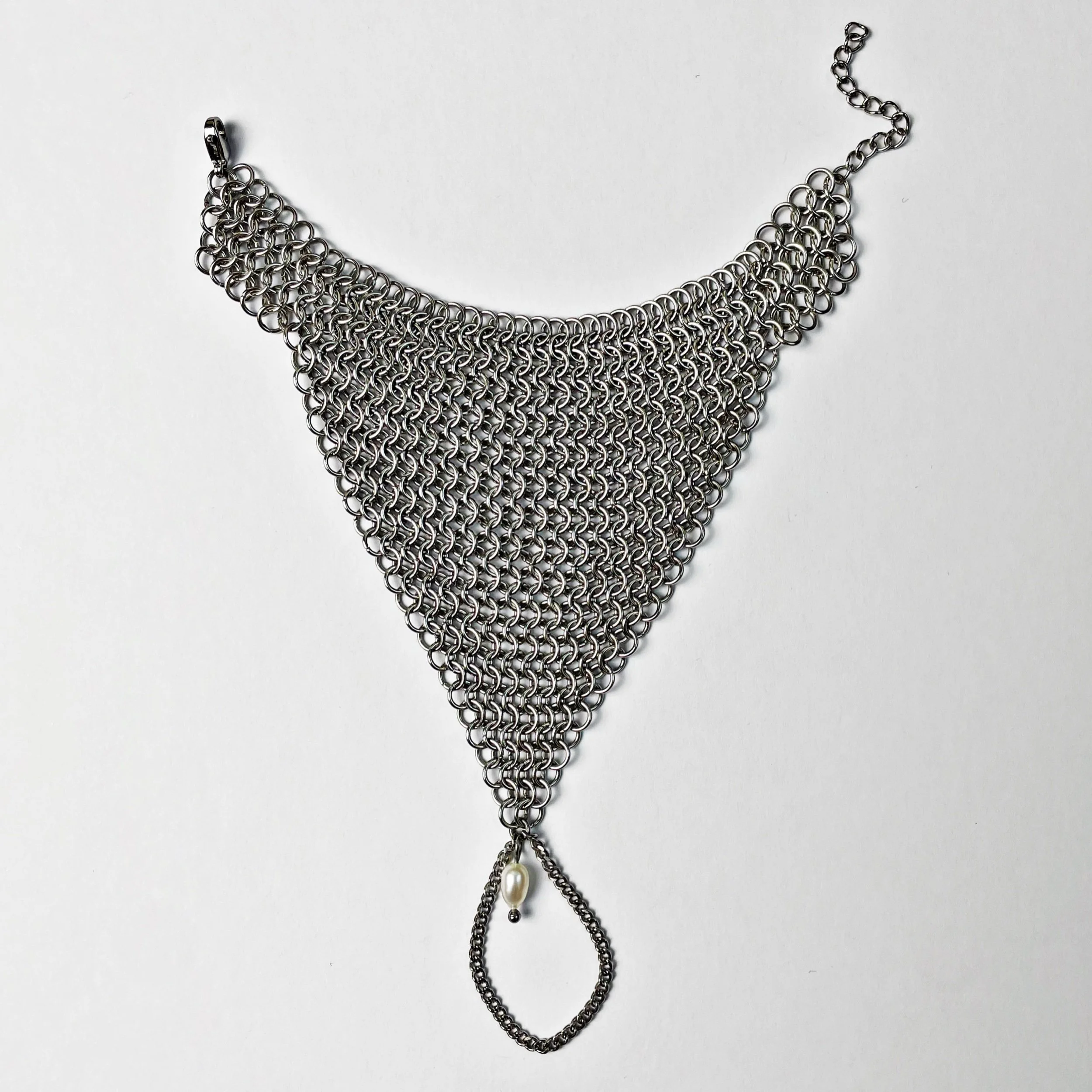 stainless steel chainmaille, freshwater pearl and stainless steel findings