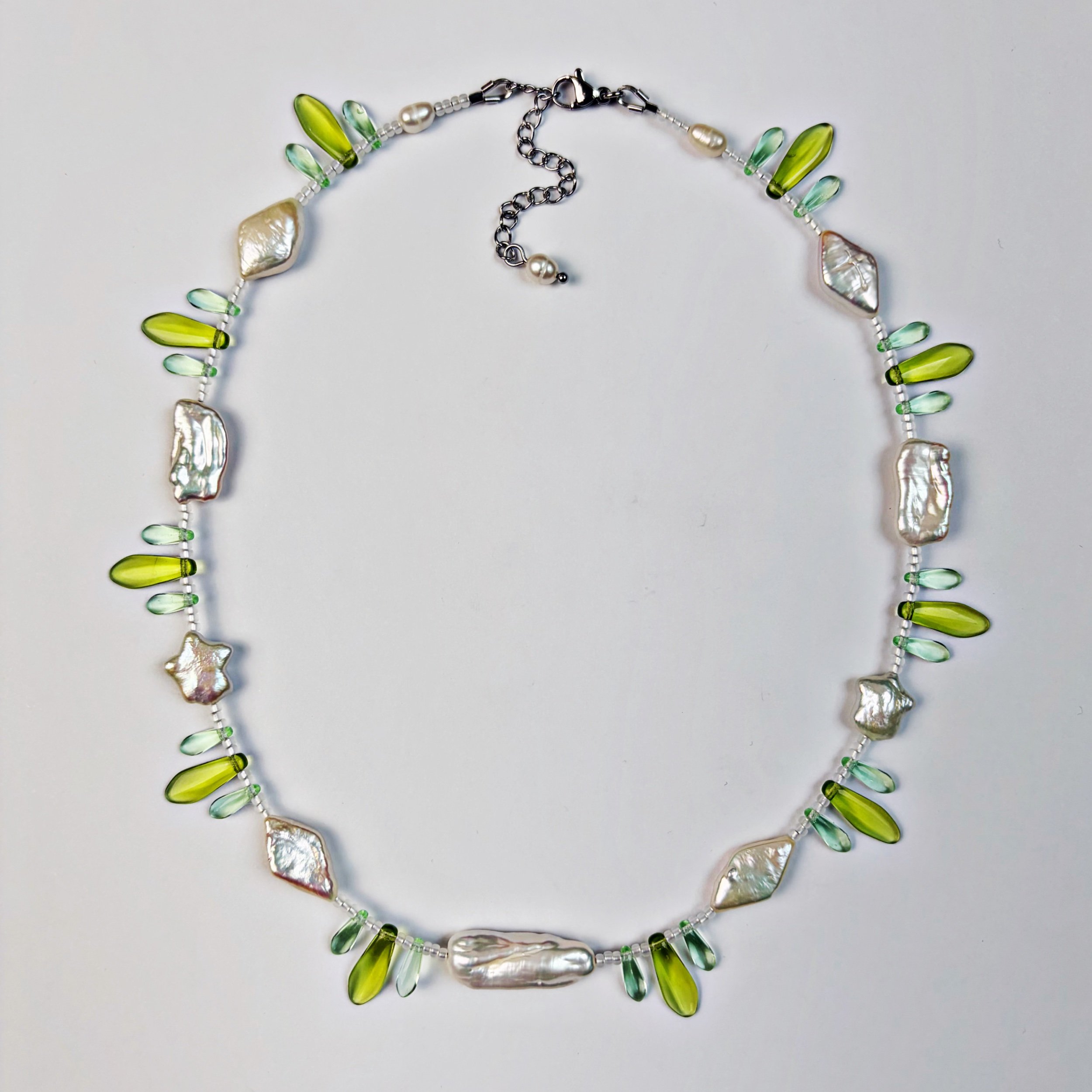 freshwater pearls, glass beads, carnelian and stainless steel findings