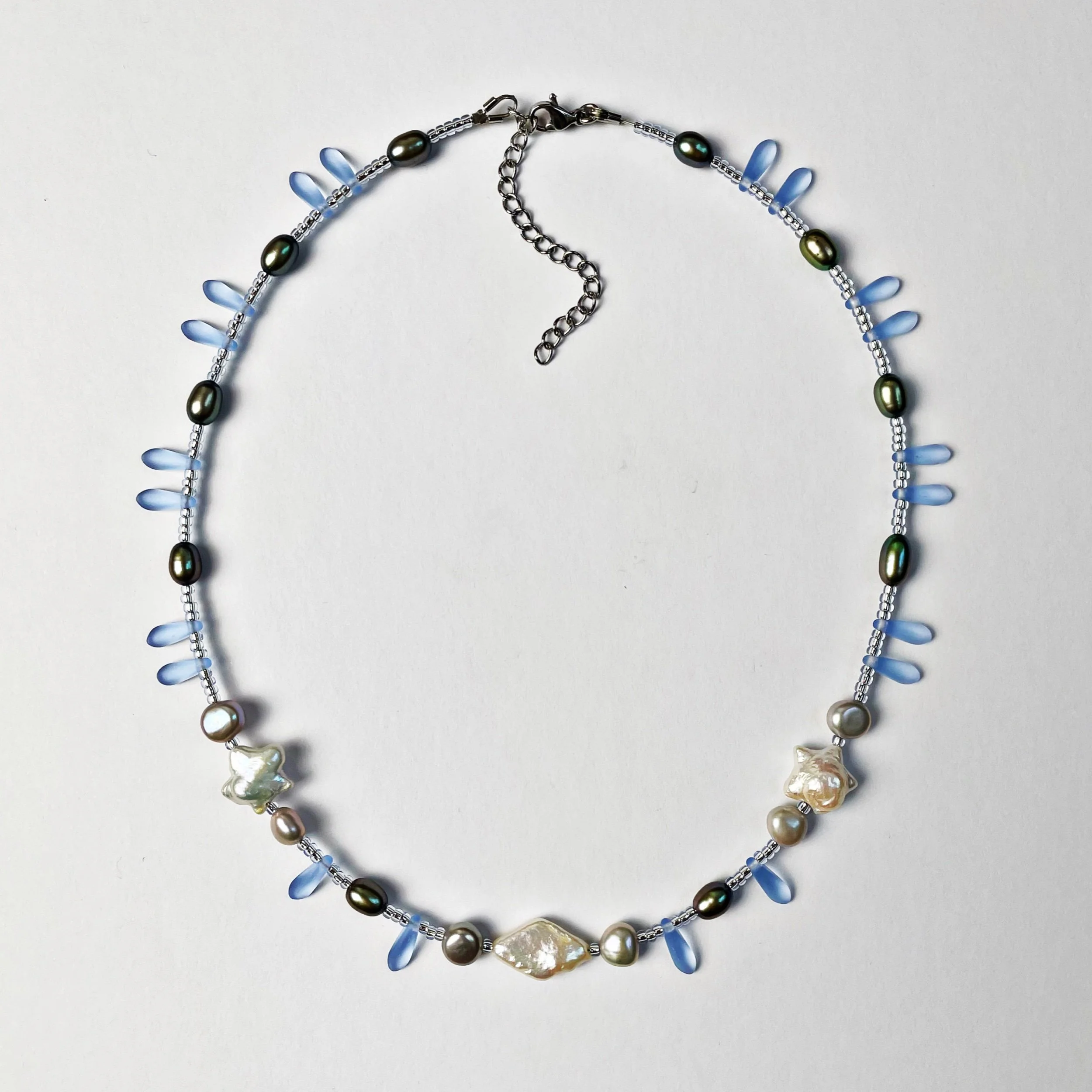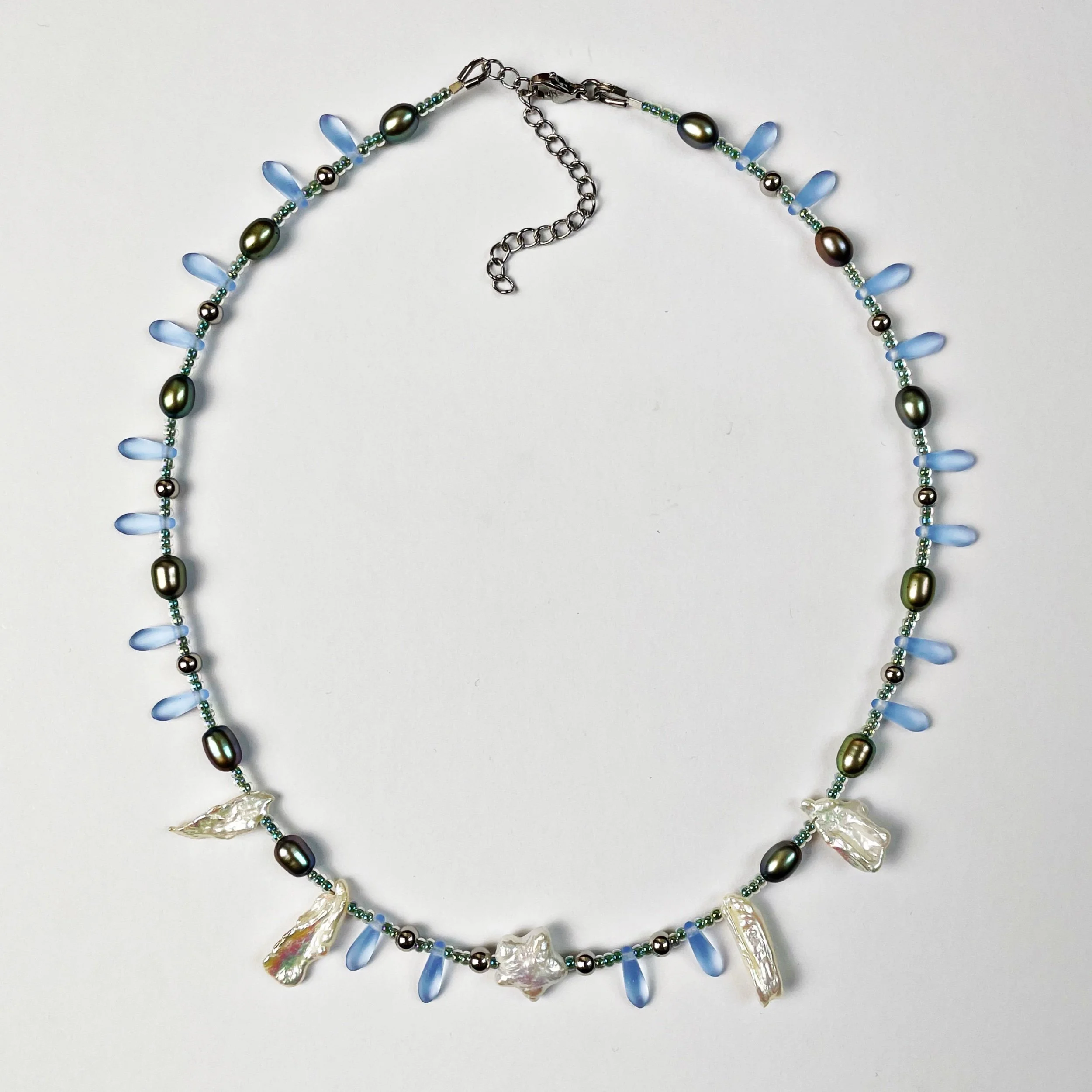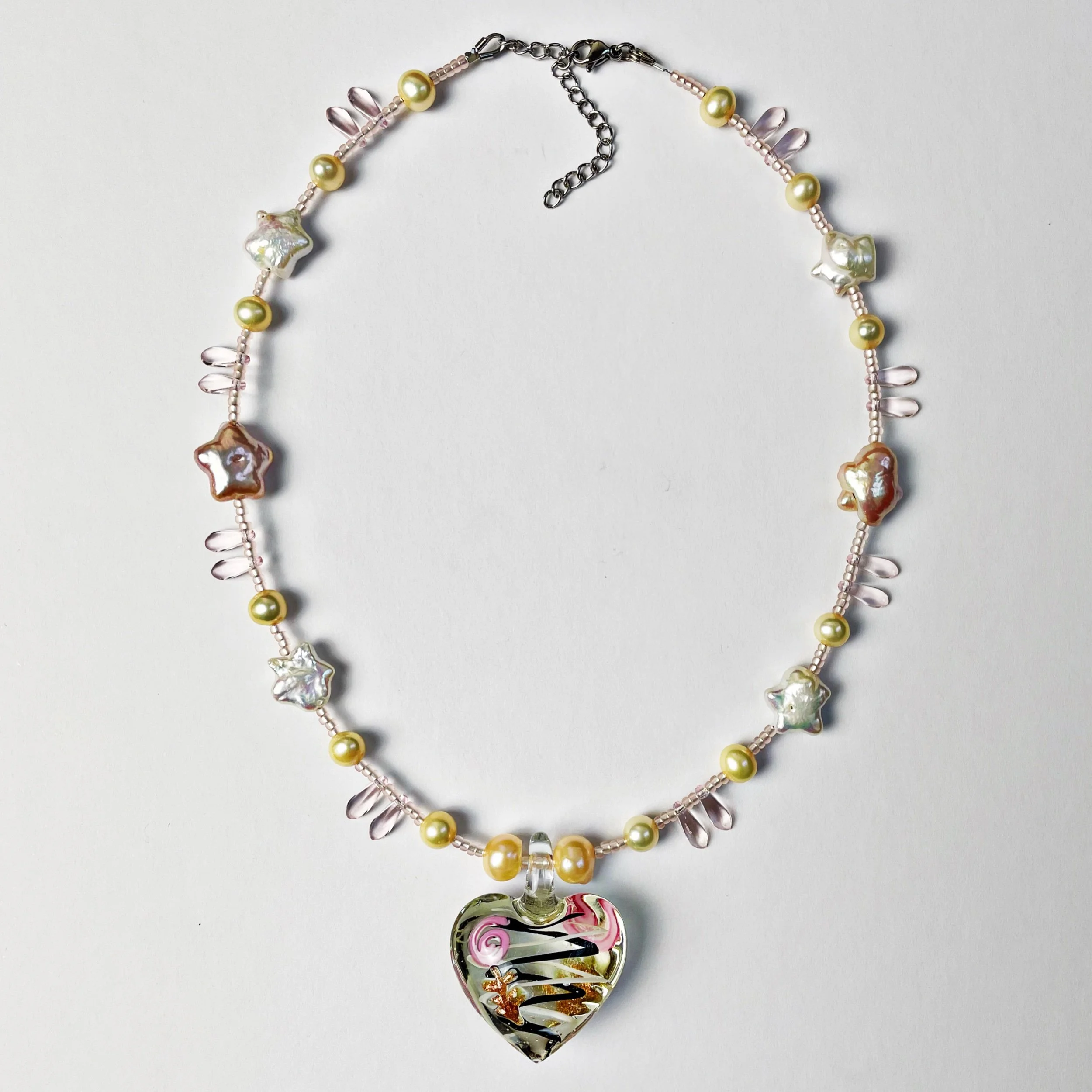 freshwater pearls, glass beads, glass pendant and stainless steel findings